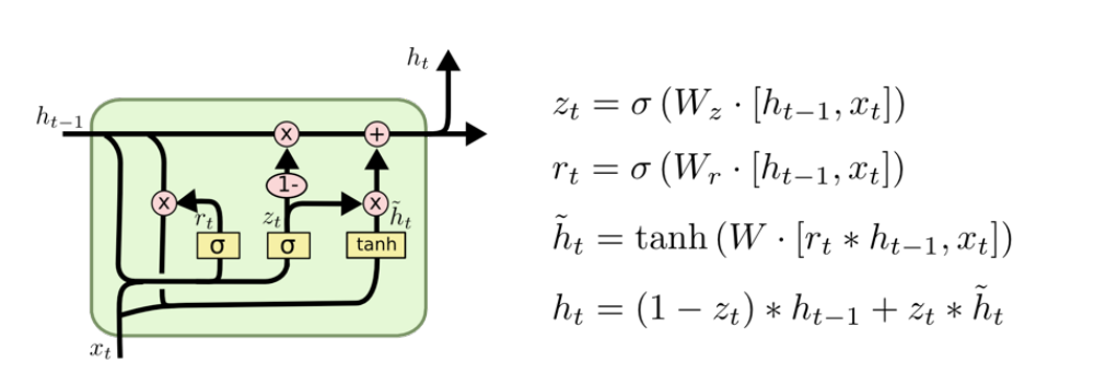 - LSTM과 유사하지만, Output gate를 없애고 더 적은 파라미터로 동일한 아웃풋을 낼 수 있도록 고안한 모델
