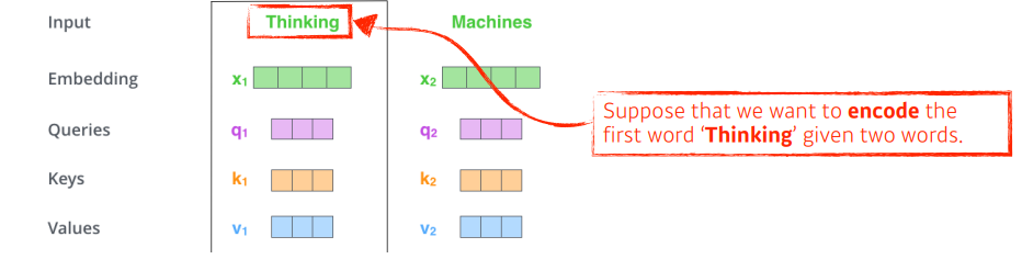- Thinking과 Machines이라는 단어를 인코딩한다면 위와 같다.
