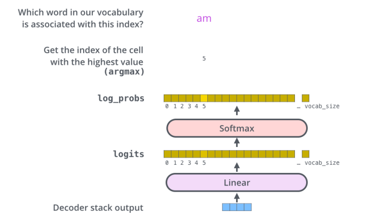 마지막 layer에서는 디코더의 출력 스택을 단어에 대한 분포로 변환한다.