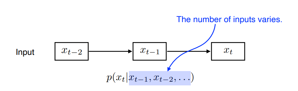 - 몇개의 단어가 입력으로 올지 모른다. 따라서 입력의 크기에 상관없이 동작해야 한다.