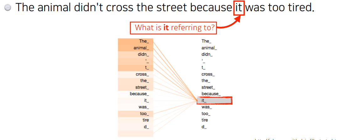 - 위와 같이 모든 단어를 고려하여 it의 경우 animal의 dependency가 높게 학습을 진행한다.