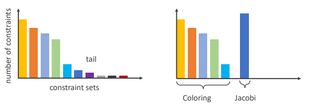 → 앞에 큰 세트들을 Graph Coloring으로 처리하고, 뒤에 긴 꼬리에 해당하는 작은 세트들은 Jacobi iteration으로 처리하여 시뮬레이션을 최적화
