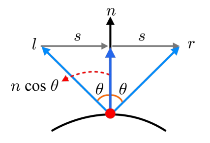 normal vector (n) : 표면의 법선 벡터