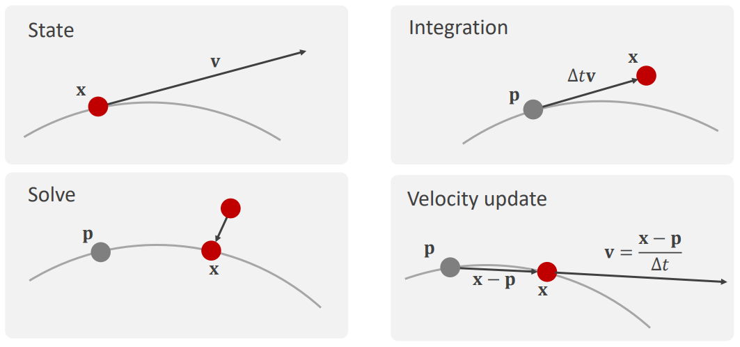 - PBD 방식은 암시적 오일러 적분과 수학적으로 동등함. 즉, 물리적으로 근거가 탄탄한 방법론임.