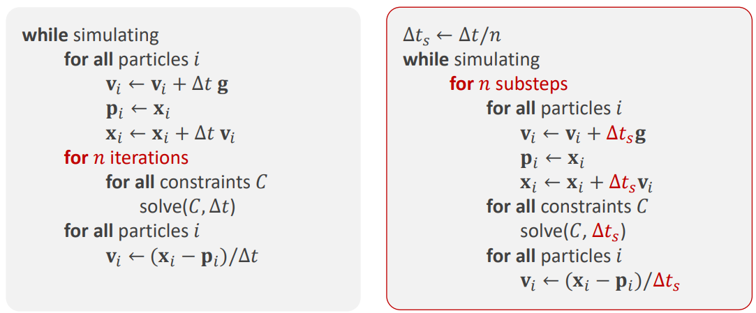 - Sub-Steps: Δt를Δt/n으로 사용하여 더 정교한 물리 시뮬레이션이 가능해짐