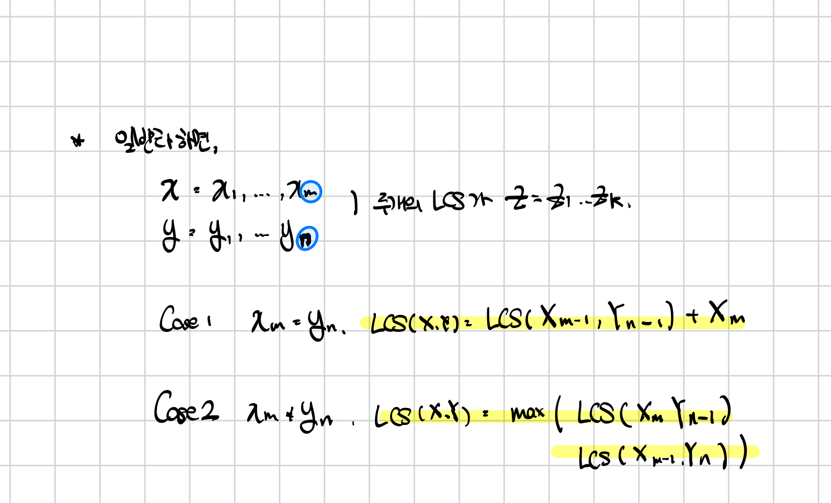 만약 다르다면 둘다 마지막 문자열을 버려보고, 더 긴 LCS를 도출하는 것을 찾는 것.