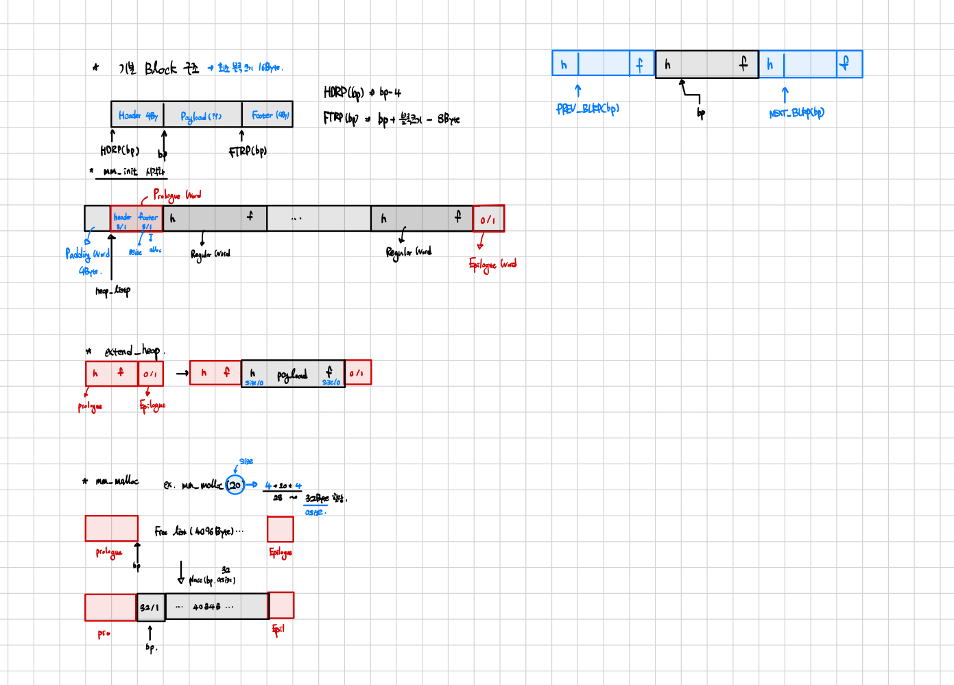 | 구조 | 모든 블록 순차 탐색 | 가용 블록만 포인터로 연결 | 크기별로 다수의 리스트 유지 |