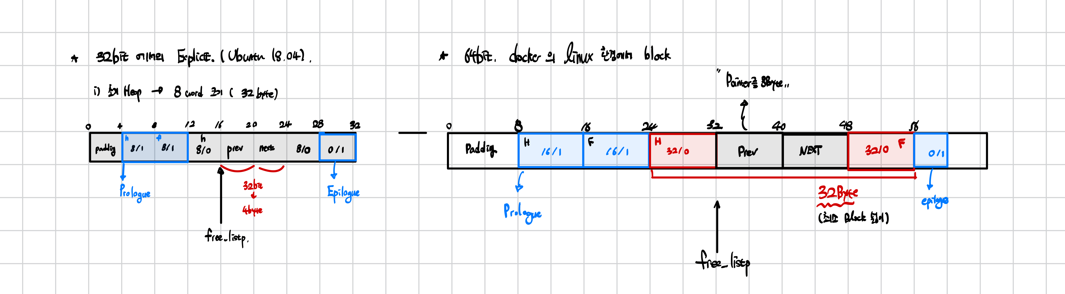 32비트일 때 블록과 도커 환경의 리눅스 환경에서 64비트의 블록 초기화가 달라져서 그림으로 표현해보았다.