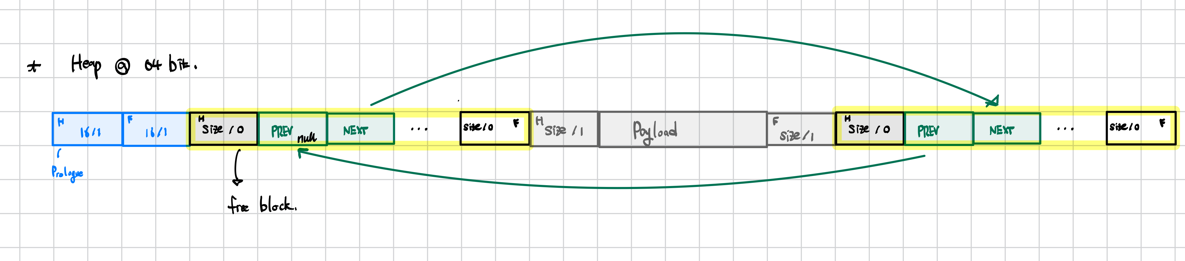나는 가용 가능한 블록을 8바이트로 크게 잡았는데 이걸 4바이트로 줄여 24바이트를 최소 블록 크기로 설정이 가능하다는 이야기를 들었다.