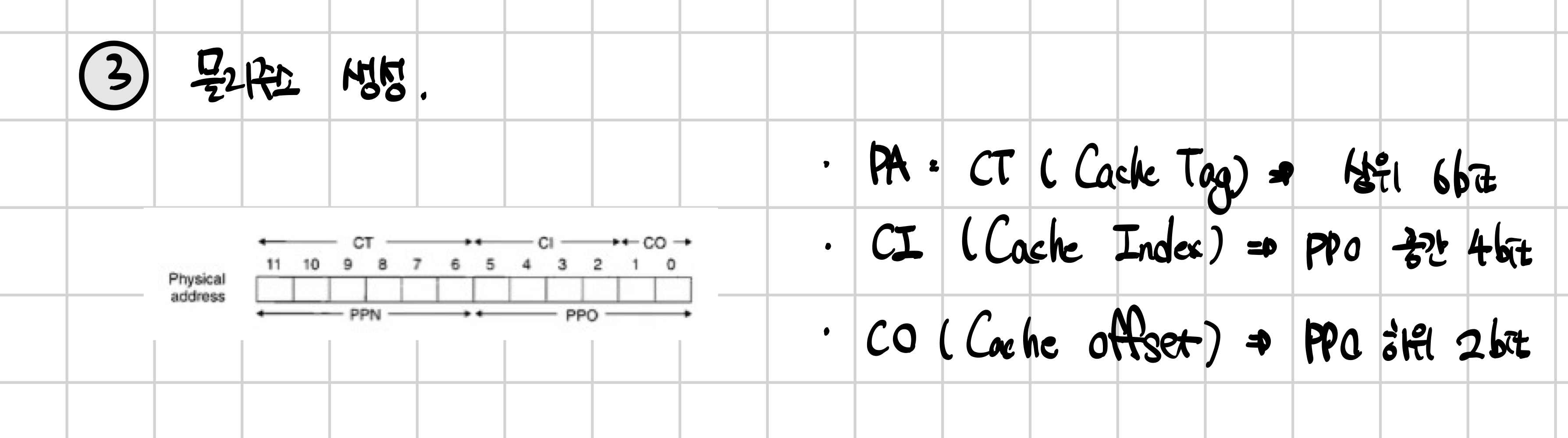 전 단계에서 생성한 물리 주소로 L1 캐시에 접근하는 과정이다.