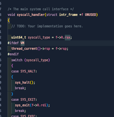 PintOS에서의 System Call은 여기서...