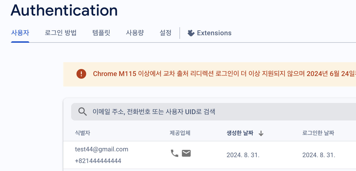 저는 SMS로 인증만 받고, 인증이 성공하면 입력한 이메일과 전화번호를 Firebase DB에 넘겨줄 예정입니다.