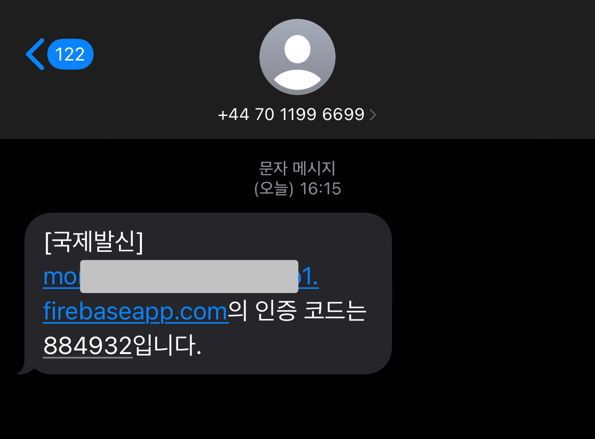 그리고 iOS 시뮬로 돌리면 실제 전화번호로 인증번호가 날아오는 것을 확인하실 수도 있습니다.