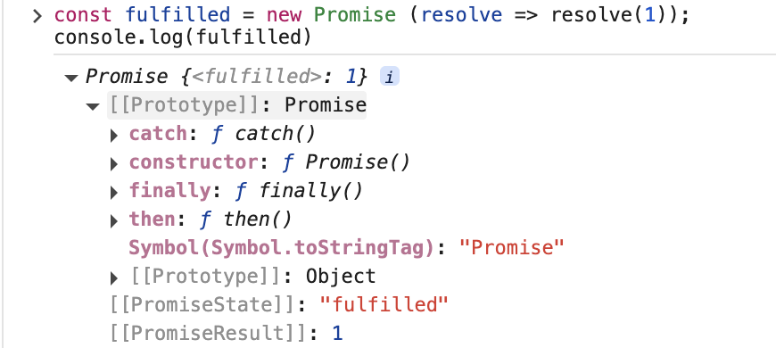 이런식으로 비동기 처리가 성공하면 [[PromiseState]]: "fulfilled"로 변경된다.