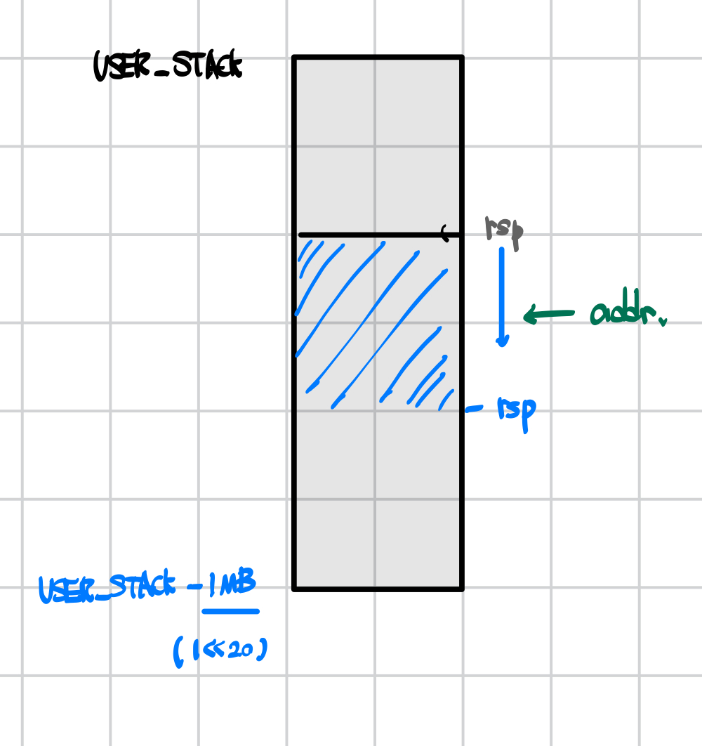 ๋ฐ๋ผ์ USER_STACK ~ USER_STACK-1MB ์ฌ์ด์ ์ ๊ทผํด์ผํ๋ค.