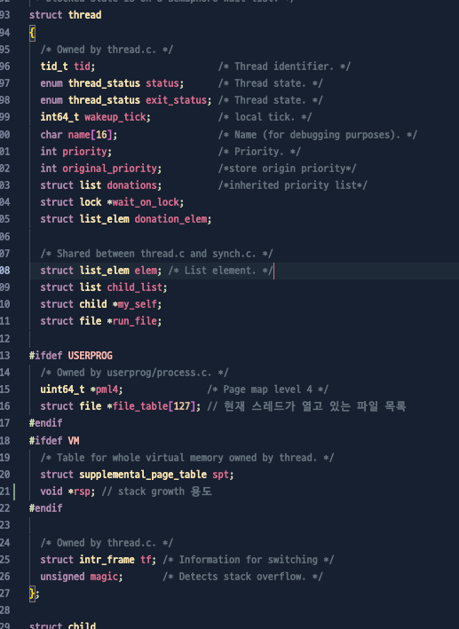 ๋ฐ๋ผ์ thread์ #ifdef ๋ถ๋ถ์ *rsp ํฌ์ธํฐ๋ฅผ ์ ์ฅํ๊ธฐ ์ํ ๋ณ์๋ฅผ ๋ฃ์ด์ฃผ์๋ค.