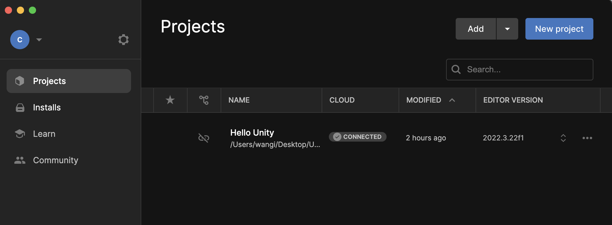 유니티 허브를 통해 유니티를 설치하는 방식으로 이루어짐