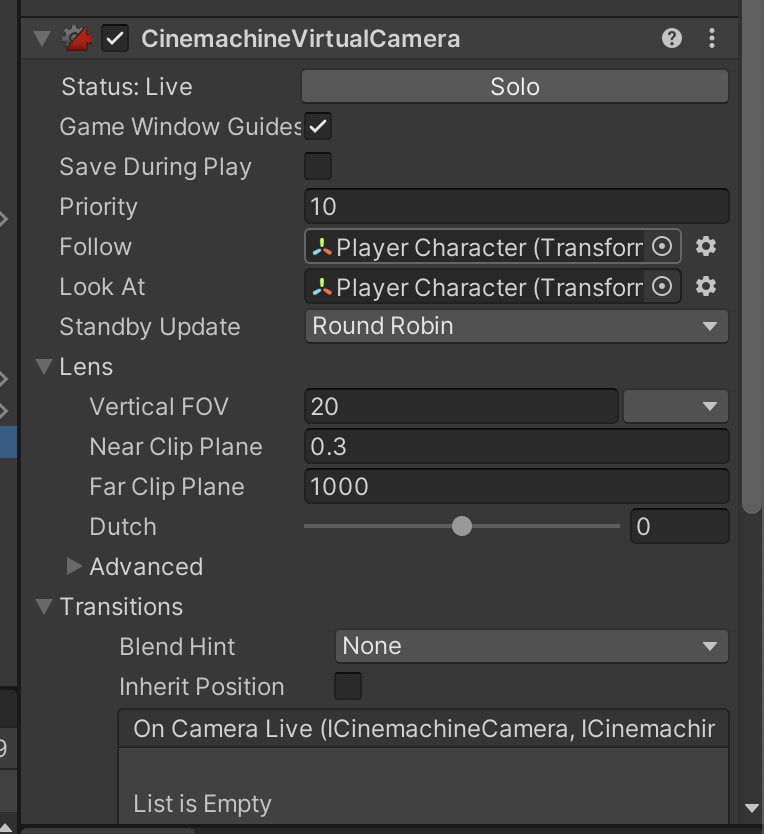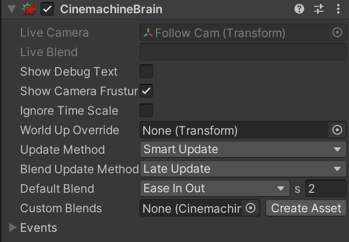 즉 브레인 카메라가 어떤 가상카메라를 활성화 하면, 그 가상 카메라의 위치로 이동하고, 설정값을 그대로 받아서 사용