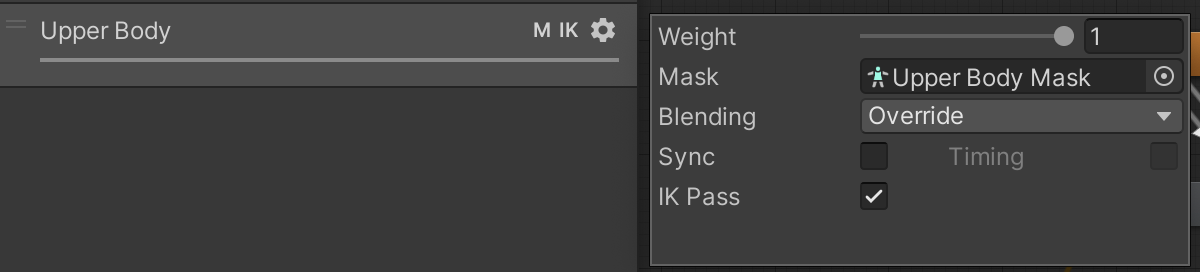 UpperBody의 mask에 적용하여 이 레이어에서 재생되는 애니메이션들은 3D모델의 상체에만 적용