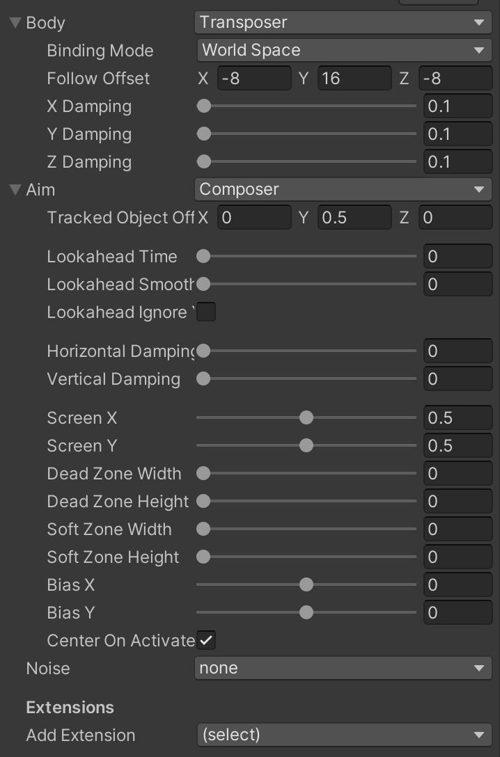 가상 카메라의 body 파라미터, 카메라가 Follow 된 추적 대상을 어떻게 따라다닐지 결정