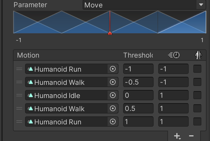 블렌드 타입은 파라미터를 하나만 사용하는 1D, 파라미터로 Move 를사용