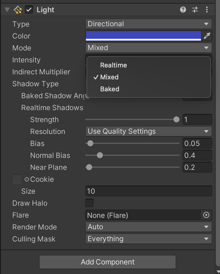 모두 고정된 오브젝트(Static)에만 적용 -> 즉 두 가지 설정 모두 옵젝이 고정되어야지 빛이 입혀짐