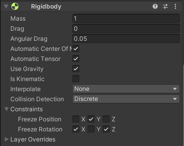 Constraints 옵션 사용을 통해서 힘(이동),충돌 등 물리작용에 의해