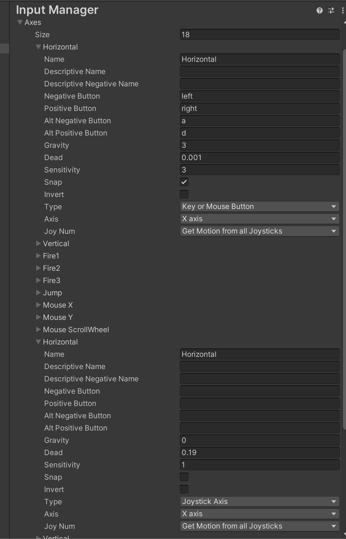 float xInput = Input.GetAxis("Horizontal");의 경우