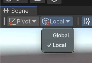 씬창의 툴 핸들에서 지역(오브젝트)/전역 변환 가능