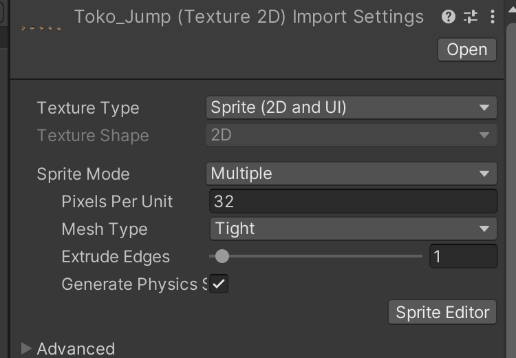 Unity는 기본적으로 싱글 스프라이트 모드로 가져옴