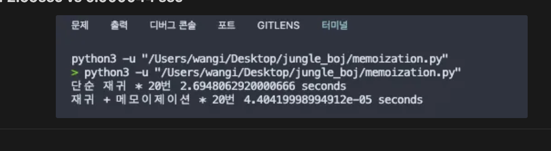 print("재귀 + 메모이제이션 * 20번", t2.timeit(number=20), "seconds")