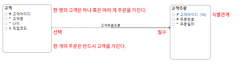 - 고객은 여러개의 고객 주문을 가질 수 있으나, 하나의 고객 주문은 하나의 고객만을 가질 수 있다.