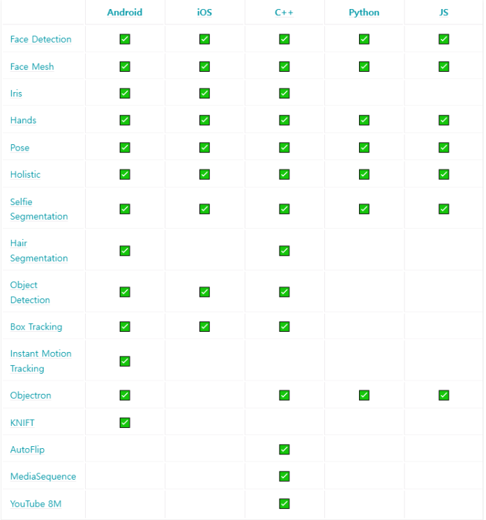 먼저 Medaipipe는 구글에서 제공하는 AI 프레임워크로 pose, face , hand 등 다양한 비전 솔루션을 제공합니다.
