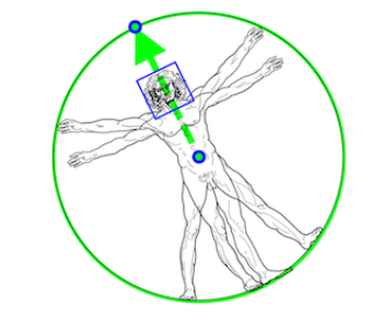사람의 엉덩이 중간점, 전체 사람을 둘러싸는 원의 반지름 및 어깨와 엉덩이 중간점을 연결하는 선의 경사각을 예측해 모델을 생성합니다.