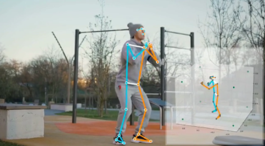 ML kit Pose Detection API를 지원하는 BlazePose 연구를 활용해 전신의 33개의 3D 랜드마크 및 배경 분할 마스크를 추론하는 ML 솔루션입니다.