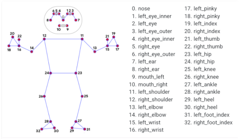 Pose Landmark를 사용하려면 제공된 랜드마크의 번호를 알아야합니다.