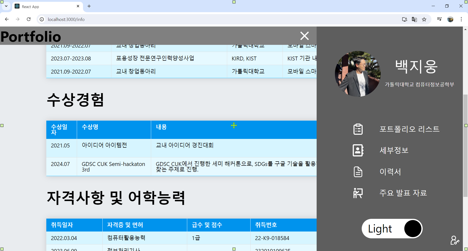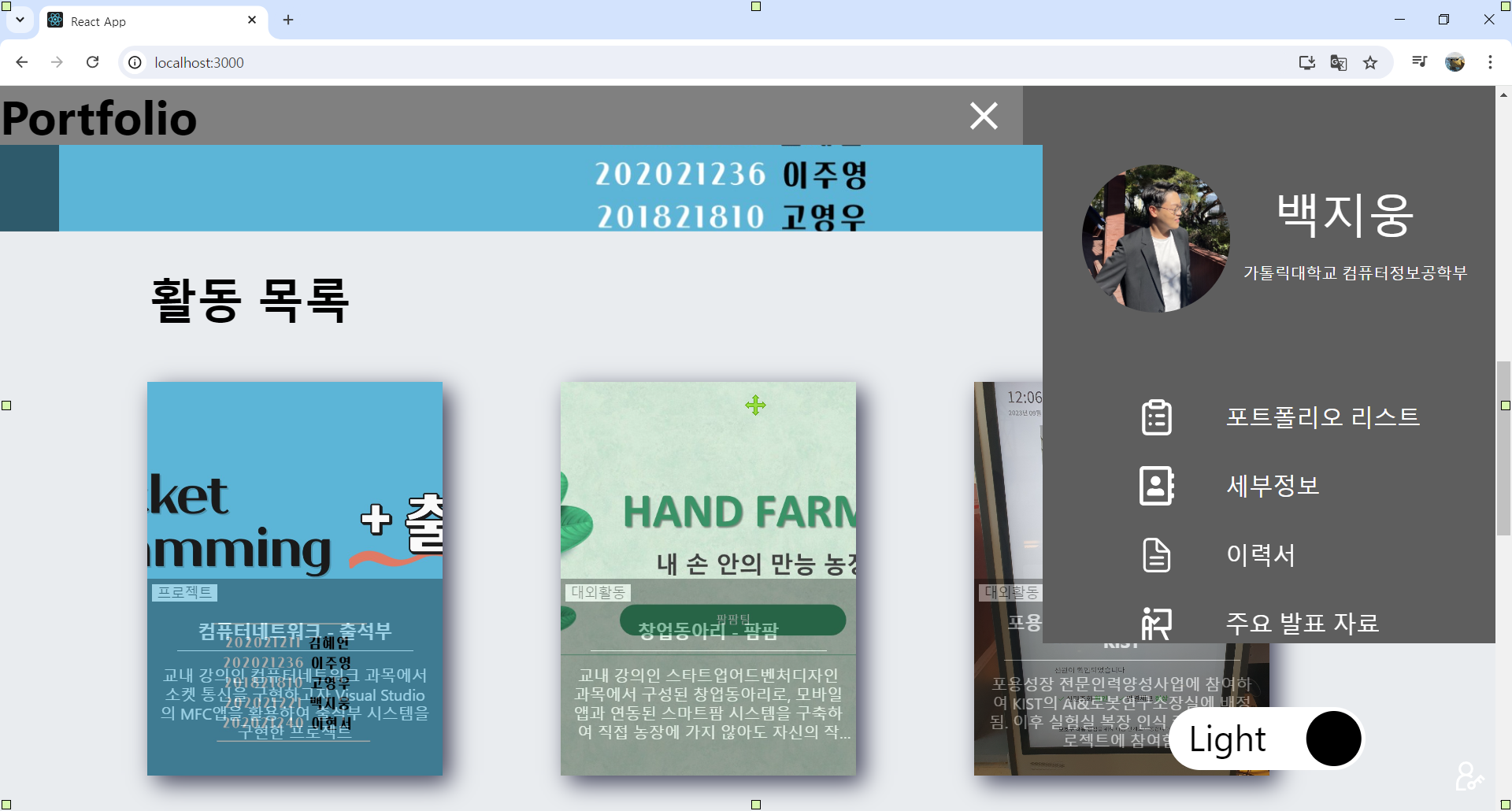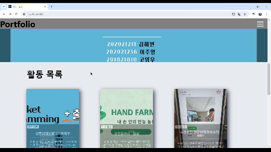 다른 포트폴리오를 참고해봤을 때, 이 페이지는 가만히 있고 아랫 내용이 이걸 덮어내면 예뻤었다. 즉시 따라해본다.