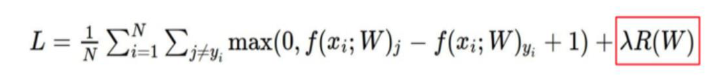 위에 빨간 네모(정규화 손실)를 제외하면, SVM손실 함수와 굉장히 유사한데, 이 두개가 충돌하면서, 최적의 값을 찾는 내용의 식 입니다.