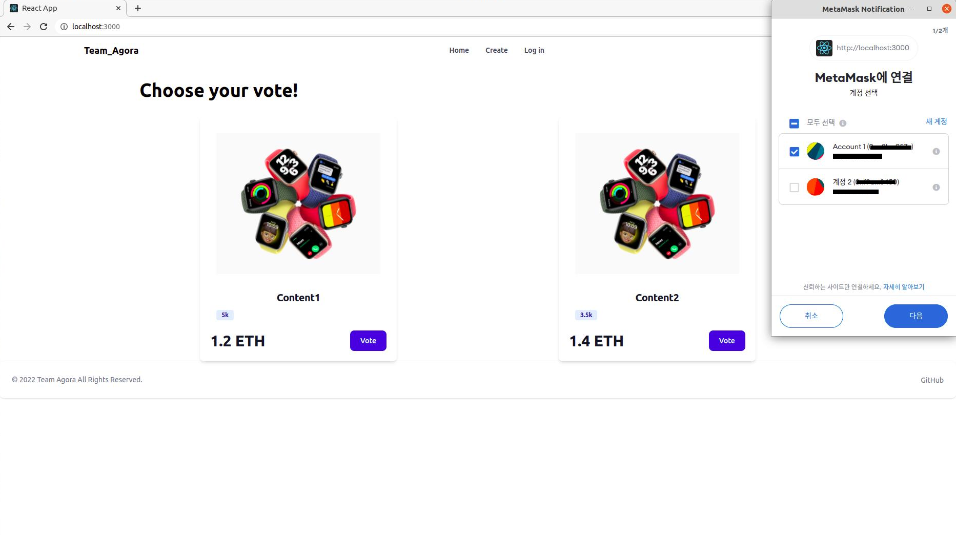 이번 팀 프로젝트에서는 NFT 기반 투표 플랫폼을 만들고자 하였다. 일정기간 NFT투표를 하여 투표참여자, 투표종료시 승리한 NFT에게 투표한 참여자들에게 인센티브를 지급하는 플랫폼을 목표로 하였다.
