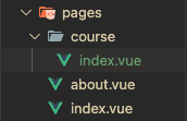 위와 같이 디렉토리 구조를 설정하면 localhost:3000/course로 접근 시 pages/course/index.vue의 내용이 화면에 출력됩니다.