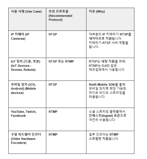 RTMP와 RTSP는 어느 한 쪽이 우월한 프로토콜을 선택하는 문제가 아니라, 상황에 맞는 프로토콜을 사용하는 문제입니다. RTSP는 IP 카메라, 드론, 그리고 기타 IoT 및 모바일 기기에서 뛰어난 성능을 발휘합니다. 반면에 RTMP는 소셜 플랫폼, 타사 애플리케이션, 그리고 구형 인코더로의 인제스트(송입)에 여전히 중요한 역할을 합니다. 각 프로토콜의 강점을 이해함으로써, 특정 라이브 스트리밍 상황에 가장 적합한 선택을 할 수 있으며, 이를 통해 청중에게 안정적인 스트리밍 전달을 보장할 수 있습니다.