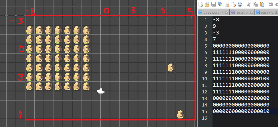 텍스트파일로 내보내면 영역으로 x, y의 min과 max가 먼저 기록되고 그 다음 0, 1로 출력이 되는 것을 볼 수 있다.
