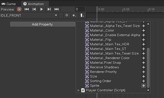 그리고 Idle 스프라이트를 드래그 앤 드롭하여 아래 사진처럼 등록하면 된다.