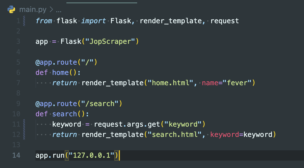 - request를 추가로 임포트하고, serach 함수에 keyword= 값을 받는 request.args.get을 사용한다.