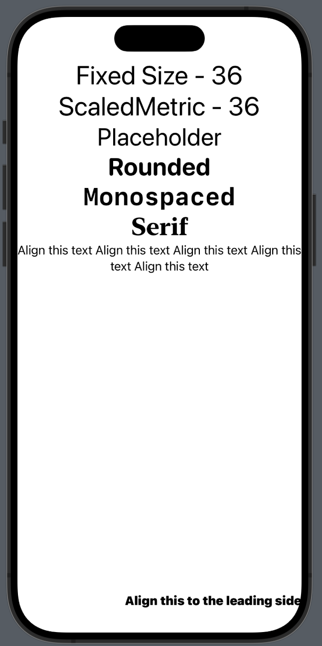 Text("Fixed Size - 36")