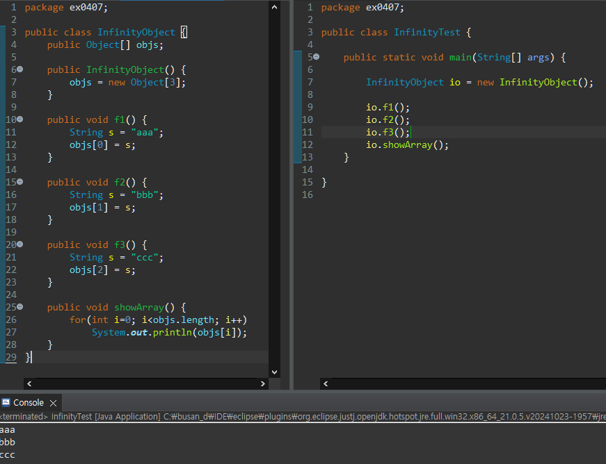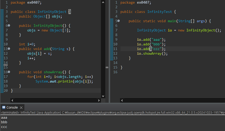 별도로 class B를 만들었는데, 그것도 Object배열에 추가가 가능하다.