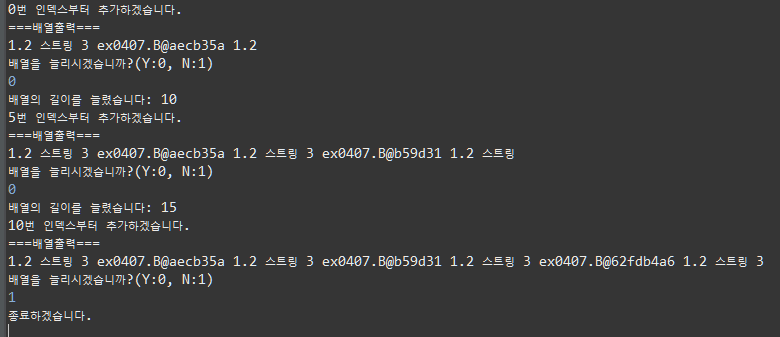 System.out.println("배열을 늘리시겠습니까?(Y:0, N:1)");