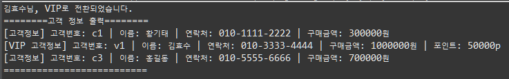 1,000,000원 초과시 vip고객으로 전환 vip고객이 되었다는 메시지 출력