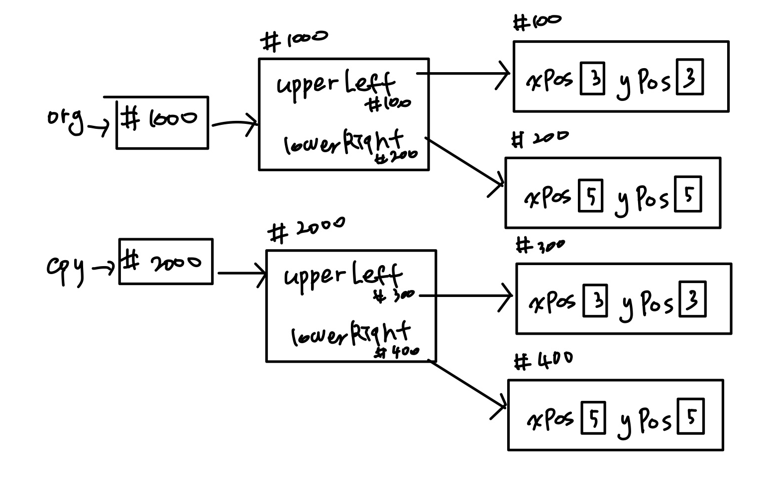 Rectangle cpy도 같이 가리키는 얕은 복사를 하기 때문이다.
