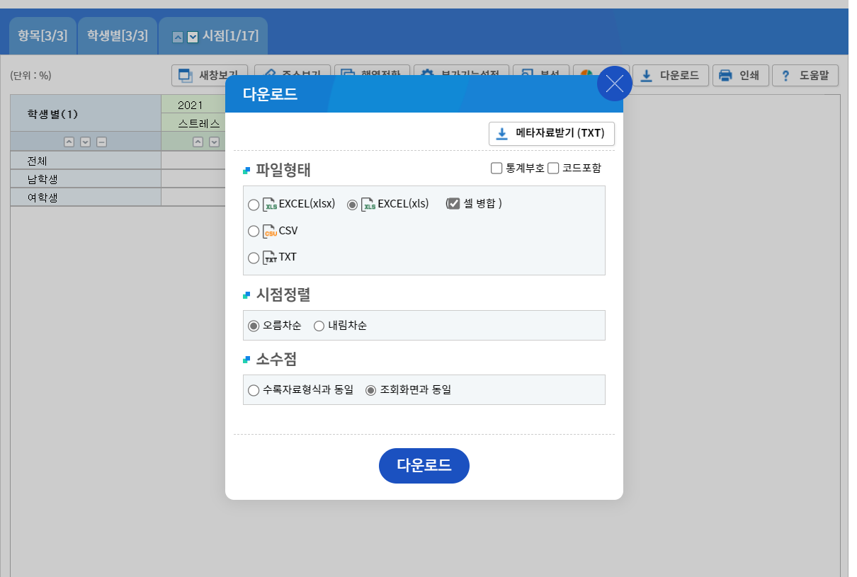 서울시 청소년 정신건강 통계 다운로드 > excel